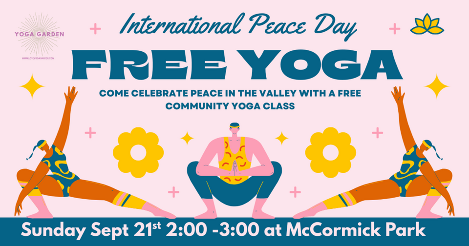 Join Sara at McCormick Park on Sunday, September 21st 2:00 - 3:00 PM for a complimentary YOGA Practice celebrating INTERNATIONAL PEACE DAY!